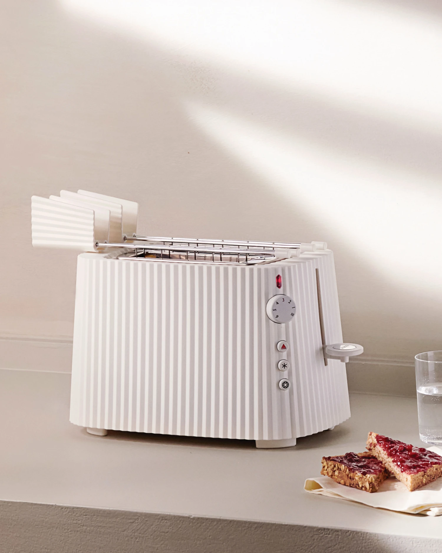 Deze Alessi Broodrooster is ontworpen door designer Michele De Lucchi en is onderdeel van zijn Plissé collectie. Zijn ontwerp is gebaseerd op de geplooide jurk uit de Franse Haute Couture mode. De structuur met plooien veranderen het apparaat in een driedimensionale vorm. Door het fascinerende ontwerp is het apparaat niet alleen handig voor gebruik, maar ook een klein onderdeel in je interieur. De broodrooster beschikt over 6 verschillende bruiningsniveau’s die eenvoudig te stellen zijn met de knop. Daarnaast heeft hij ook een verwarmings- en ontdooifunctie en kan hij ook eenzijdig roosteren met de bagelfunctie. Met de stopfunctie komt het brood automatisch omhoog zodra ze klaar zijn. Kortom, een goede aanvulling op je keukenblad!