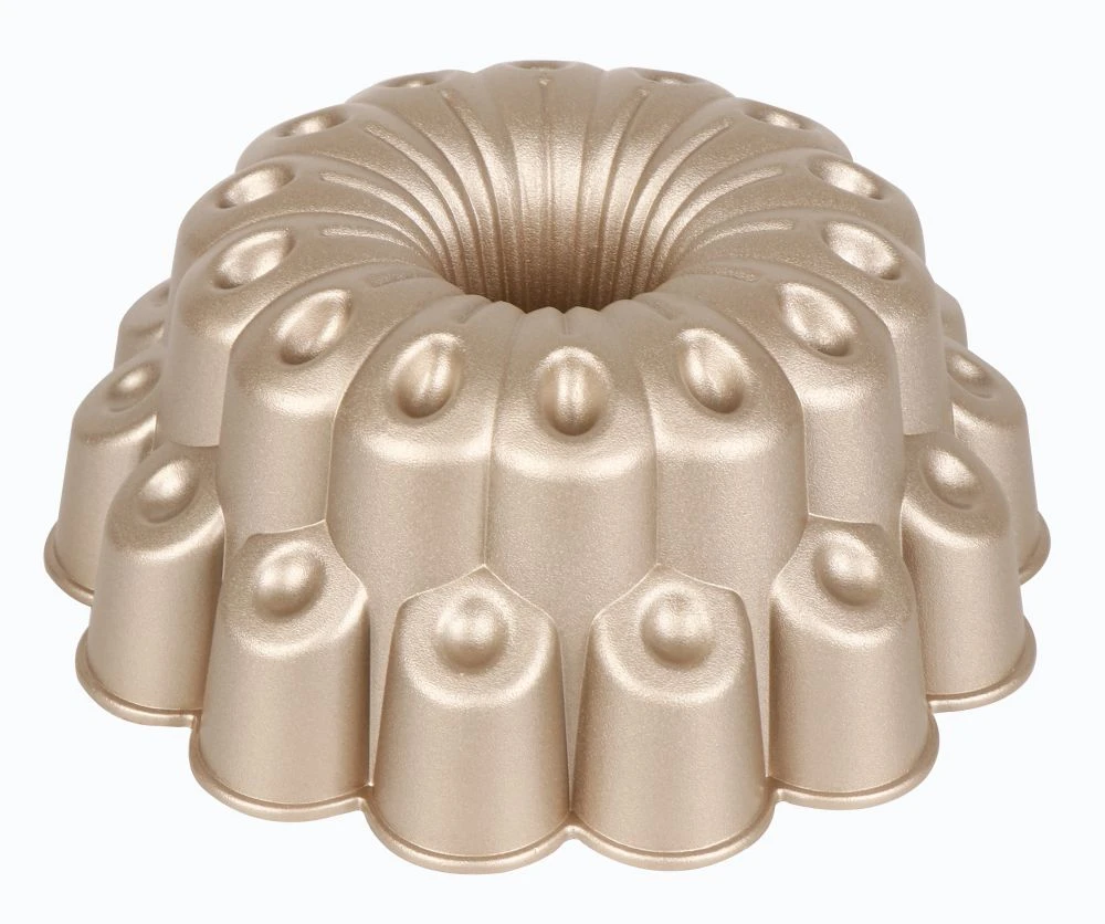 Bak de lekkerste én de mooiste tulband met de Blackwell Tulband Bakvorm Marquise – Gietaluminium – ø 24.5 cm / 2.5 liter. Deze Tulbandvorm is gemaakt van Gegoten Aluminium en is Brons van kleur. De Tulbandvorm heeft een diameter van 24.5 cm en een inhoud van 2.5 L. Na gebruik kan je de Tulbandvorm eenvoudig reinigen in de vaatwasser.