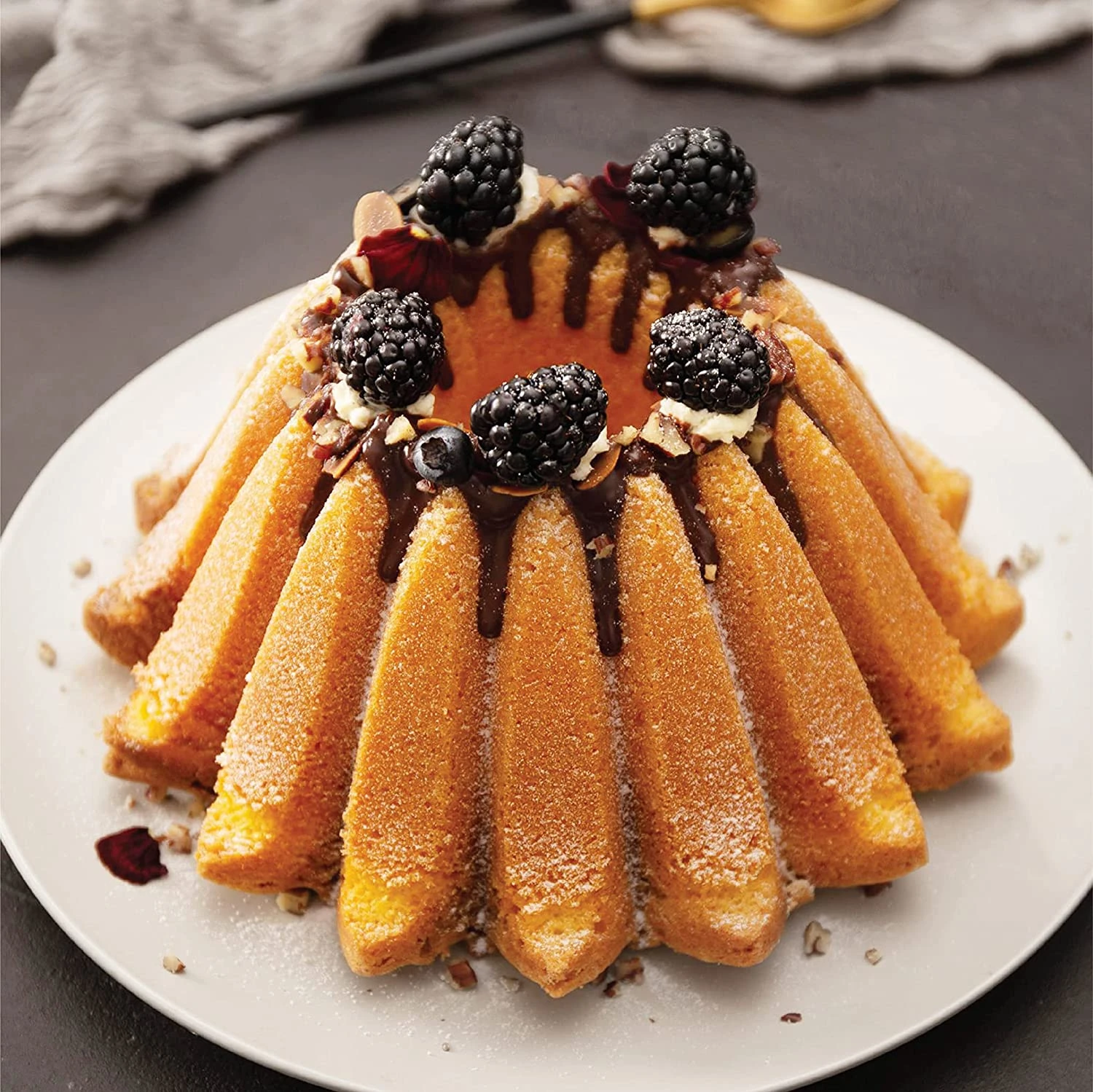 Bak de lekkerste én de mooiste tulband met de Blackwell Tulband Bakvorm Spring Water – Gietaluminium – ø 24 cm / 2.5 liter. Deze Tulbandvorm is gemaakt van Gegoten Aluminium en is Brons van kleur. De Tulbandvorm heeft een diameter van 24 cm en een inhoud van 2.5 L. Na gebruik kan je de Tulbandvorm eenvoudig reinigen in de vaatwasser.