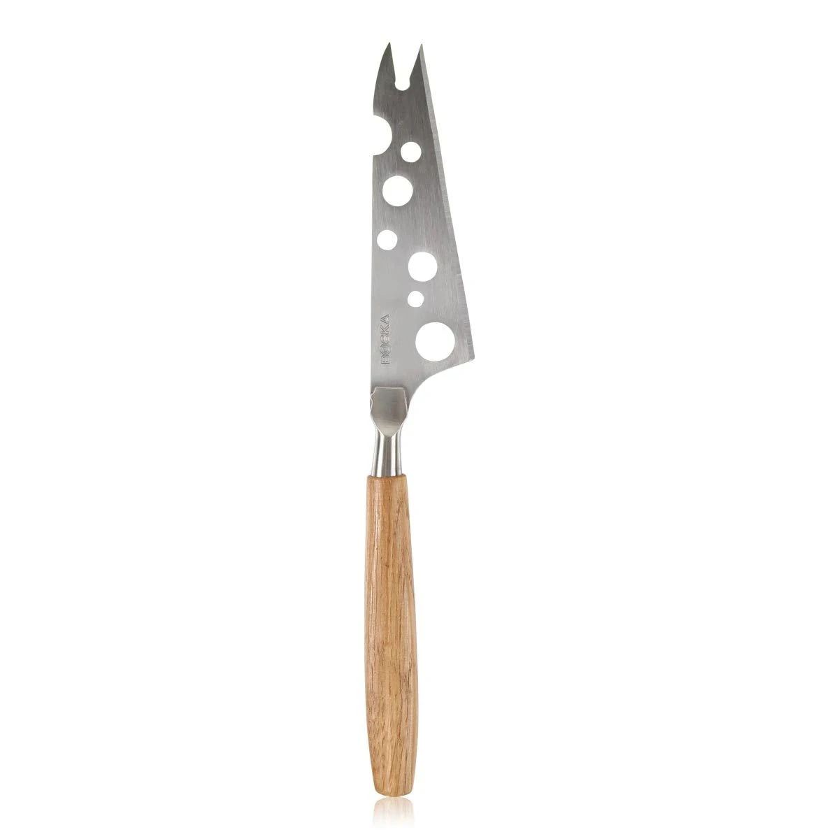 Bij het Boska Kaasmes Cheesy Eiken op Achterkant krijgt u tien jaar garantie. Het kaasmes is geschikt voor zachte en half harde kaas zoals Brie of Gorgonzola. Het kaasmes is gemaakt van hout en RVS. Met de gevorkte punt van het mes serveer je stijlvol jouw versgesneden kaas. Dankzij de gaten in het mes blijft kaas ook niet plakken.