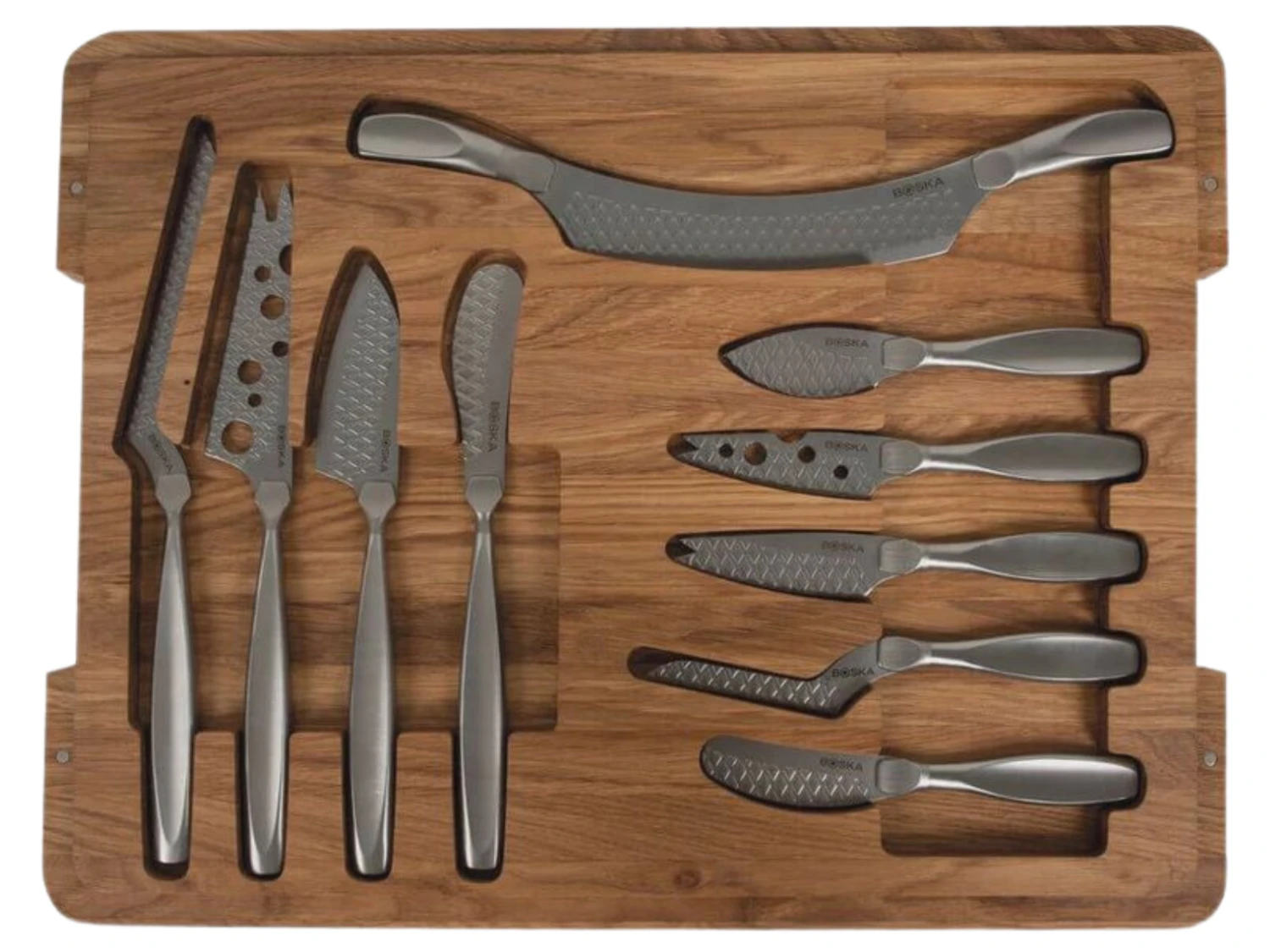 | Inhoud doos | 10 kaasmessen, 1 serveerplank |
