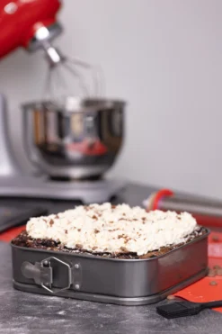 Laat uw fantasie de vrije loop en bak met deze springvorm de mooiste en lekkerste taarten. U kunt eindeloos variëren: appeltaart, cheesecake, chocoladetaart, kwarktaart enz. Door de siliconen laag blijft het deeg niet plakken wanneer u de taart uit de vorm haalt. Met de klem kunt u eenvoudig de vorm losmaken van uw zelfgebakken taart. De vorm is van uitstekende kwaliteit, de bodem is snijvast en de klem van roestvrij staal. Wilt u zelf uw taarten bakken? Koop dan deze springvorm!