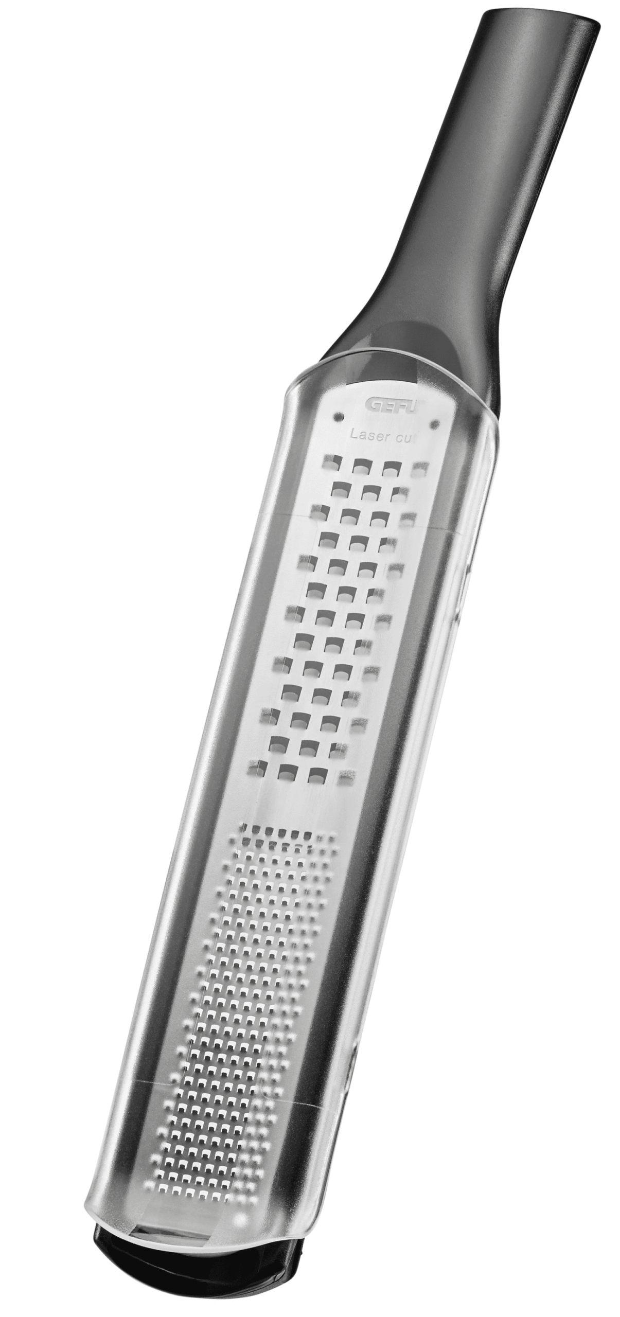 De Gefu Rasp Fijn & Grof Rafino is erg multifunctioneel. Deze rasp is namelijk zowel fijn als grof, doordat het blad in twee delen is opgesplitst. Aan de bovenkant is rasp erg grof, waardoor je bijna krullen eruit krijgt, en aan de onderkant is het juist een heel erg fijne rasp voor bijvoorbeeld chocolade of gember.