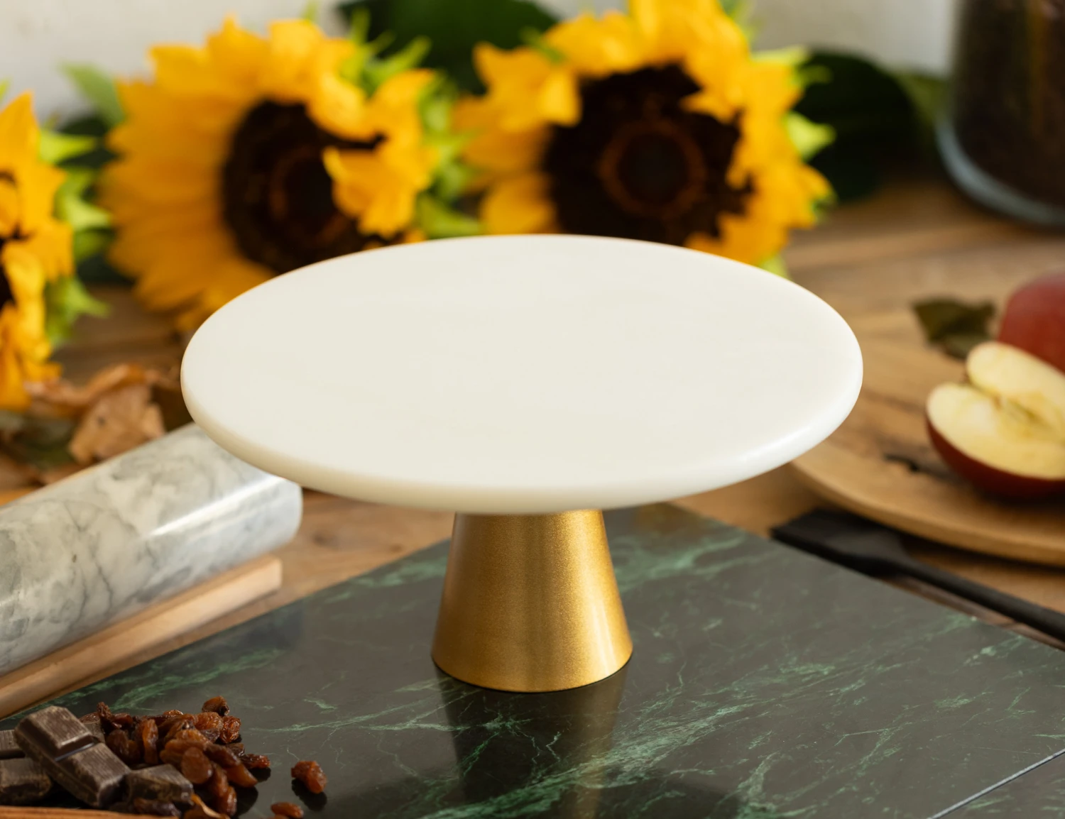 Presenteer je zelfgemaakte taarten op dit stijlvolle taartplateau van Jay Hill. Het taartplateau heeft een diameter van 25 centimeter, is 12 cm hoog en bestaat uit een witte marmeren plaat en goudkleurige stalen voet. Het plateau is ook zeer geschikt om desserts, fruit of kaas op te presenteren. Na gebruik is het plateau makkelijk schoon te maken met de hand.