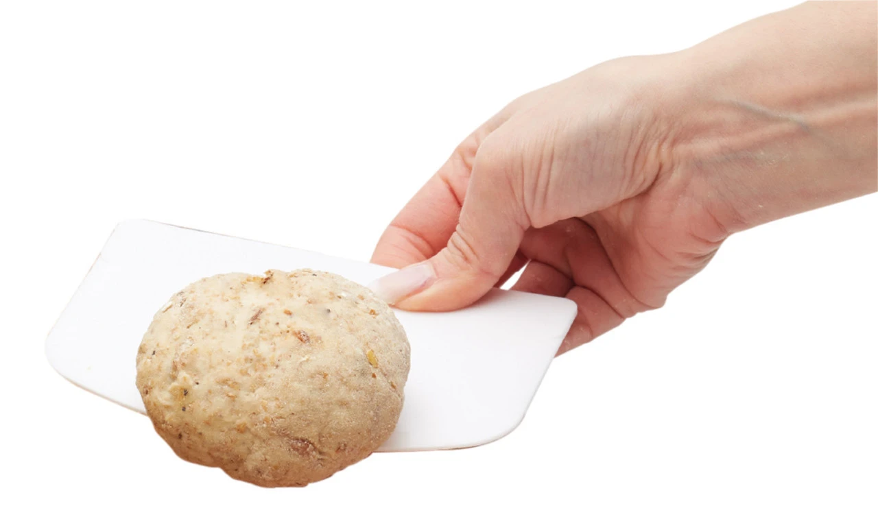 De deegschraper is gemaakt van kunststof en kan na gebruik in de vaatwasser.