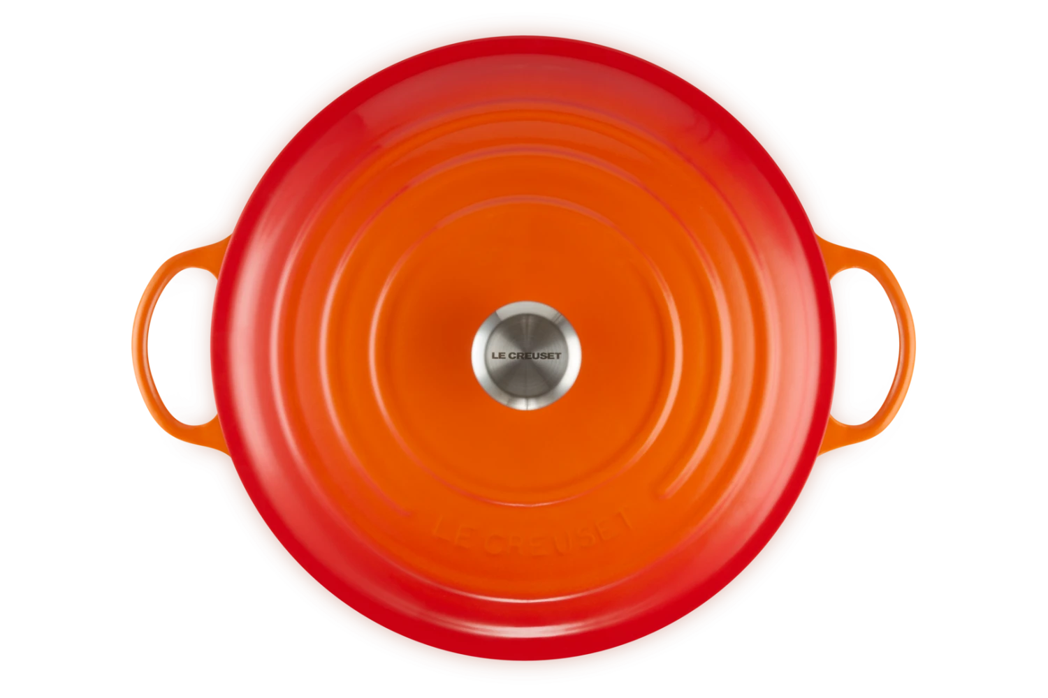 De Le Creuset Signature collectie staat bekend om zijn hoogwaardige kwaliteit. Een echt werkpaard: geschikt voor de oven (behalve de pannen met houten handgrepen), kookplaat, inductie of onder de grill. Dankzij de grote handgrepen kun de pan eenvoudig verplaatsen van de kookplaat naar de oven of naar de tafel, zelfs als je ovenhandschoenen aan hebt.
