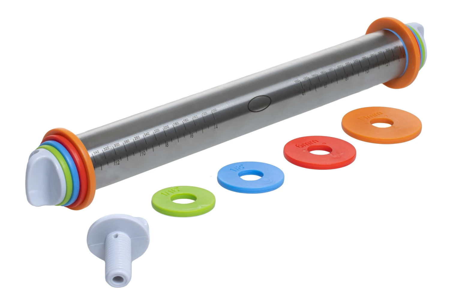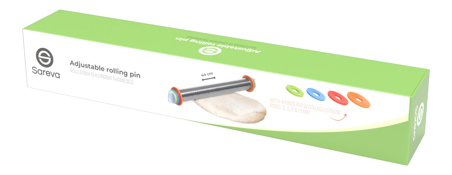Zoek jij nog dé ideale deegroller? Dan is de Cookinglife Deegroller Verstelbaar 4 Ringen perfect voor jou! Deze deegroller heeft 4 verschillende ringen, met deze ringen kan jij de dikte van jouw deeg eenvoudig bepalen. De diameters van de ringen zijn 2, 3, 6 en 10 mm. Dus of je nu pizzadeeg of koekjesdeeg bereid, met deze deegroller maak jij het perfecte deeg! De Cookinglife Deegroller Verstelbaar 4 Ringen heeft een maataanduiding en kan daarnaast na gebruik eenvoudig worden gereinigd in de vaatwasser.