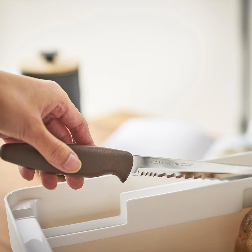 De Yamazaki Broodbak Met Messenhouder Tower Wit is de ideale manier om jouw brood eenvoudig op te bergen. Hierdoor houd jij je keuken niet alleen netjes, maar dit zorgt ook voor langer vers brood! Ook heeft de broodbak een mogelijkheid om een broodmes op te bergen, met een afmeting van 34 x 1,7 x 3,5 cm. Deze is niet inbegrepen. De Yamazaki Broodbak Met Messenhouder Tower Wit is een stijlvolle toevoeging aan jouw keuken!